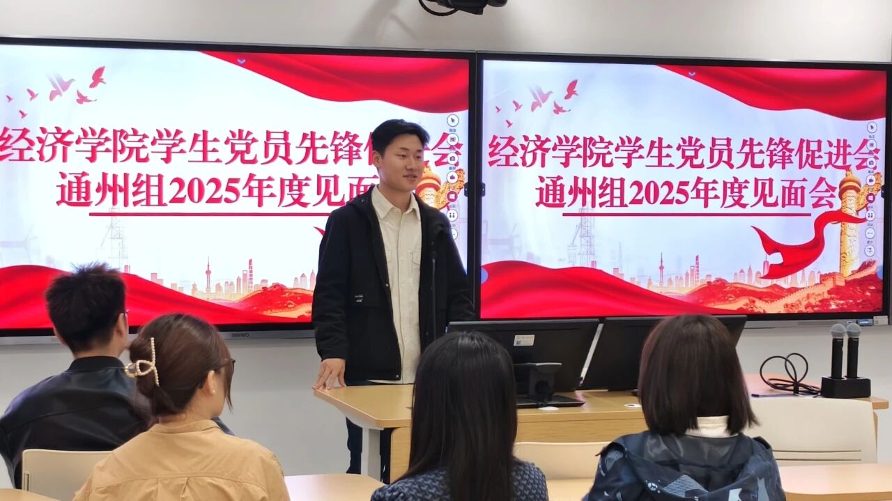 为深入贯彻落实党的二十届三中全会精神,落实立德树人根本任务,进一步强化党建引领,以高质量党建引领学生工作高质量发展,充分发挥经济学院学生党员先锋促进会通州组的积极性和创造性,2025年10月12日下午,经济学院学生党员先锋促进会通州组第二次见面会在通州校区京东群学楼b117教室顺利举行。经济学院团委负责人吕天曲出席会议,经济学院学生党员先锋促进会通州组全体成员参加会议,会议由通州组组长刘文心主持。