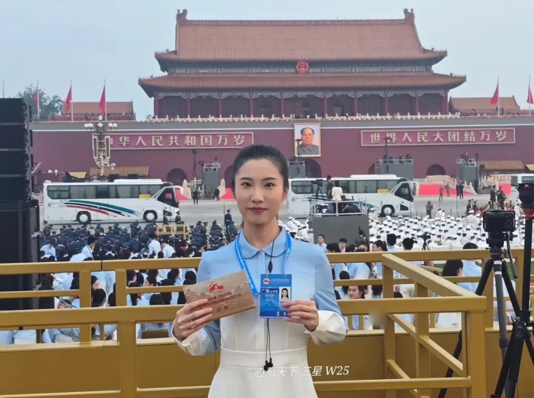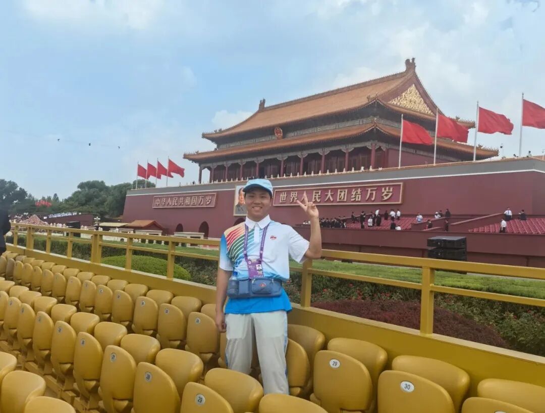 有幸参与此次大会的服务保障工作,亲眼见证伟大祖国的历史时刻,我感到无比激动、无比光荣。在天安门广场望着旭日从东方升起,我仿佛看见80年前,革命先烈是如何向死而生,团结奋斗,才终于迎来宝贵的和平曙光。如今硝烟已远,但大会中每位坚守岗位的工作者,都在用行动传承伟大抗战精神,接受着祖国和人民的检阅。此次志愿服务经历更是一场生动的“大思政课”——眼前的人民军队气势如虹、头顶战机轰鸣刺破苍穹、八万只和平鸽翱翔晴空,都让我燃起强烈的爱国热情,坚定“正义必胜!和平必胜!人民必胜!”的必胜信念。未来,作为新时代的人大学子,我一定继续在学习和工作中不懈奋斗,践行“让党放心,不负人民”的青春誓言!