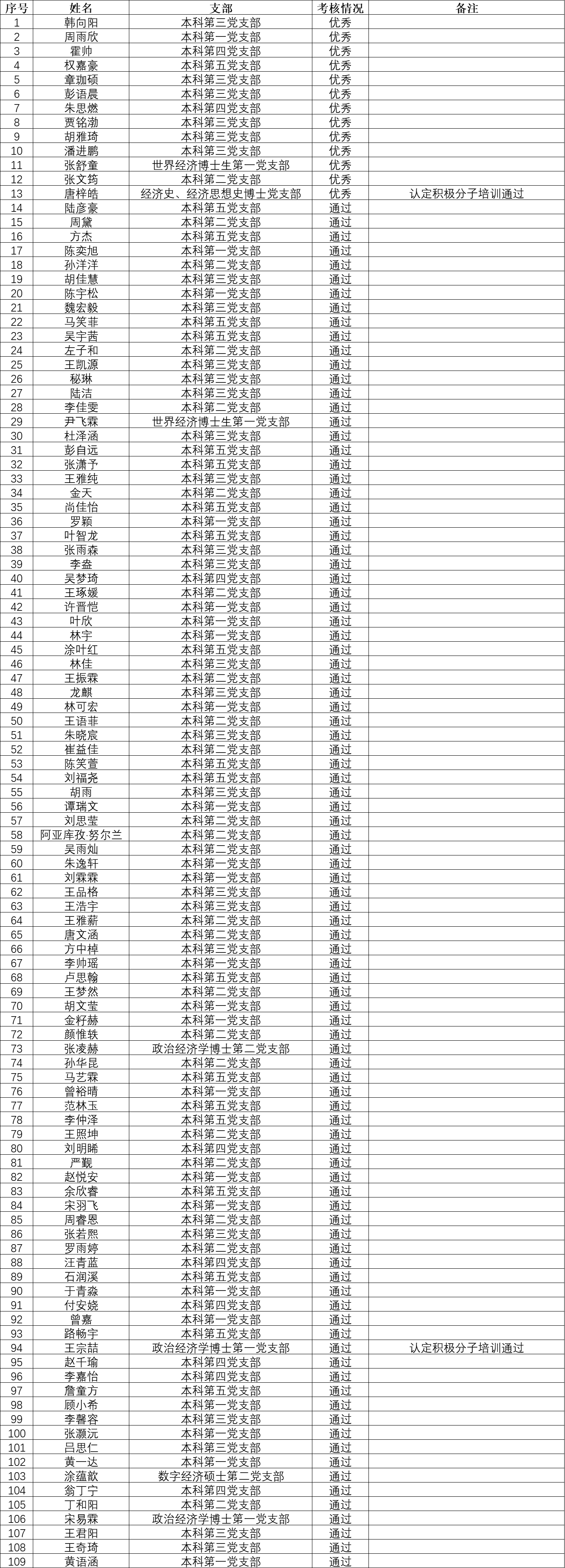 经济学院2025-2026学年秋季学期党课学习小组中关村校区通过学员名单